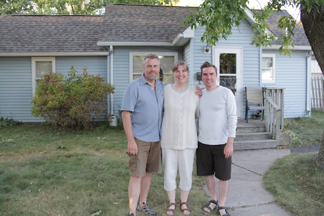 Dad, Aunt Cindy & Jason in front of Grandma Shirley's house